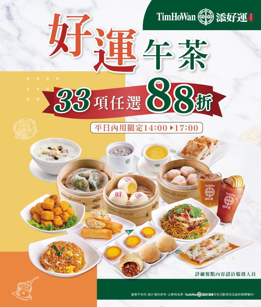 【好運午茶33項任選88折】 午茶點心的好選擇 怎麼能少了好運港點呢~💖 讓添好運為你的午茶時光帶來好運氣⭐️ 👉33種品項任選88折,千萬別錯過呀!😎 供應時間14:00~17:00(平日內用限定) 趕緊跟姊妹淘、家人朋友們約起來🎉